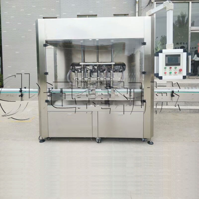 全自動辣椒醬六頭灌裝機作為公司新研發的灌裝設備在市場上起到了關鍵性的作用,是集光,機,電,氣于一體,采用活塞式定量原理,灌裝精度高,操作簡單