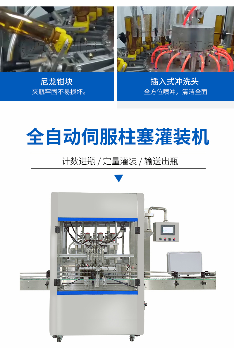 該系列果醋灌裝機采用伺服柱塞式計量灌裝原理,多項專利認證,適用于各種規格(0.1-1升可兼顧到2升灌裝)的液體灌裝。